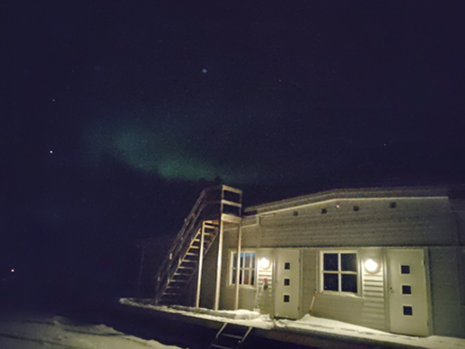 POPs研究のため、北極圏のノルウェー領、スバールバル諸島のニーオルスン基地へ行ってきました。Grubevade観測所です。11月なのでほぼ極夜で日中も真っ暗です。わずかにオーロラが見えました。(伊藤)