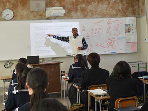 世界各国より日本の大学・研究機関等へ研究のために滞在している優秀な若手外国人研究者(JSPSフェロー)を、講師として高等学校等に派遣し、自身の研究や出身国に関する講義を英語で行うプログラム「サイエンス・ダイアログ」の講師に選出され、山口県立徳山高等学校で講義をしてきました。災害廃棄物をテーマに2時間の熱い授業を行い、高校生の皆さんから、北九州に戻ってから授業の感想を書いた直筆の手紙をもらい、とてもやりがいを感じました。(Gemechu)