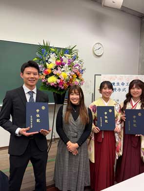 送別会をしました。伊藤研に入ってから、あっという間でしたね。社会へ羽ばたく学生は、社会人になってからも頑張ってください。(伊藤)