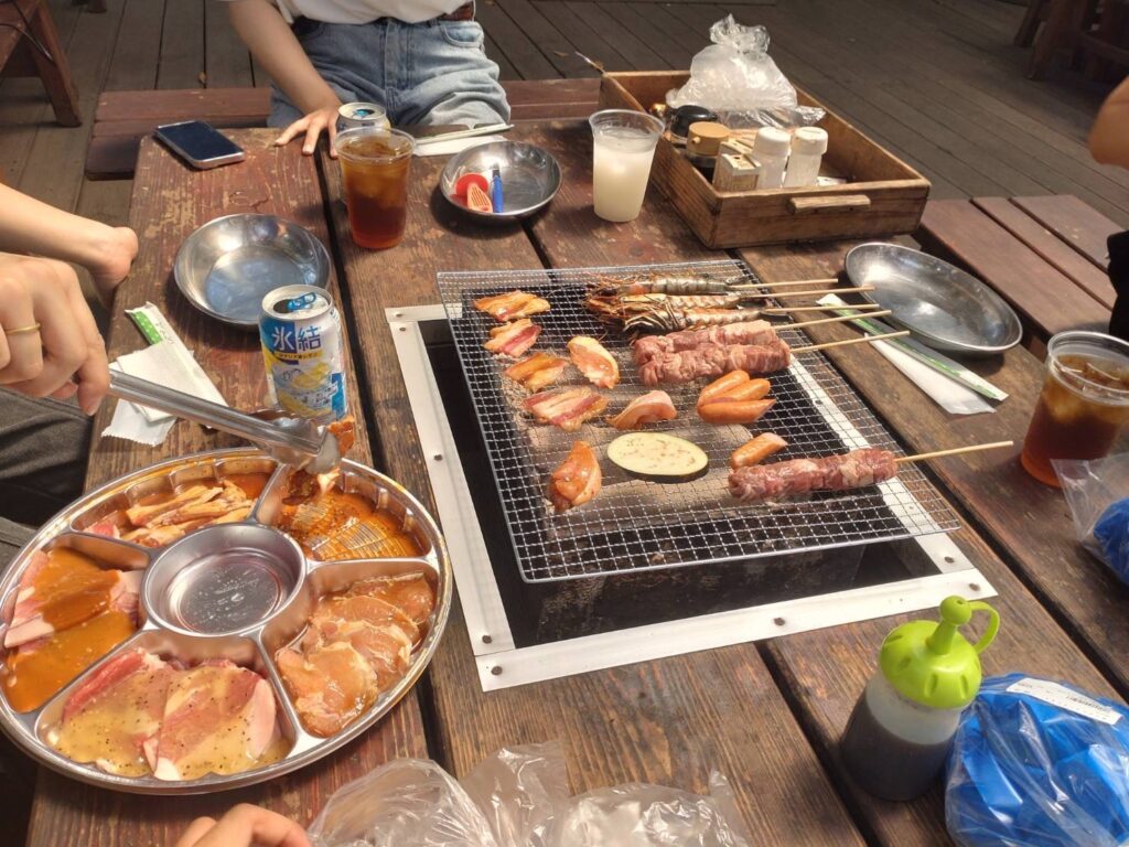 他の研究室のみんなと大盛り上がりで、新鮮なお肉にいろんな海鮮をたくさん食べて幸せでした!